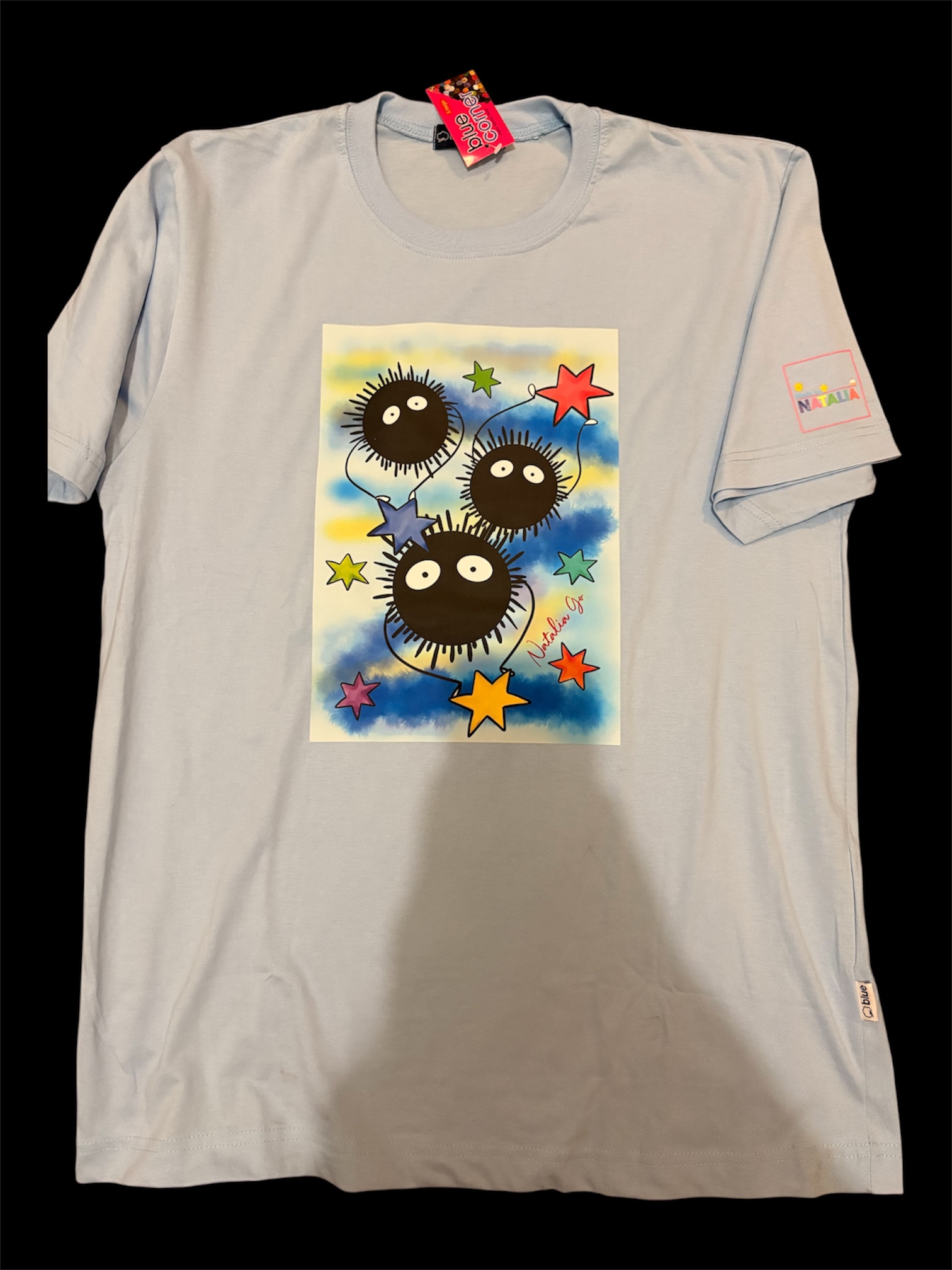 A shirt for fans of the soot sprites from Ghibli and Hayao Miyazaki’s Spirited Away. Designed by Natalia Go